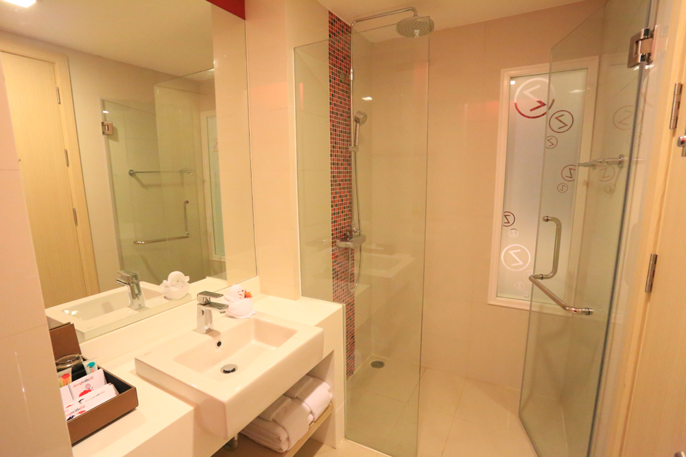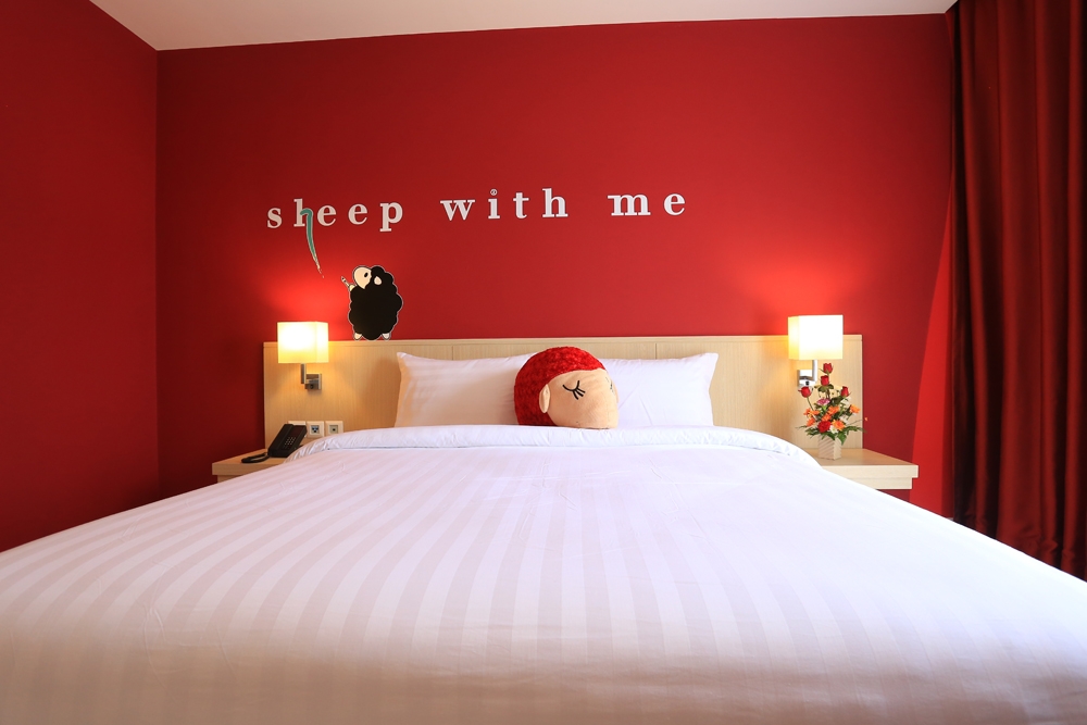 Modern room decorated in a red tone color which gives a light, internal cheer-up-feeling during your stay in Patong.